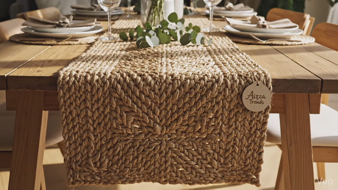 Handmade Eco Friendly Natural Jute Open Weave Dining Table Runner For Home Decor