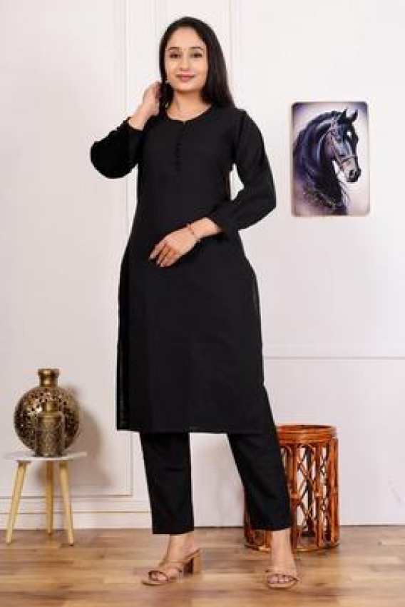 Black Cotton Kurti with Pant Set –Casual Wear for Women