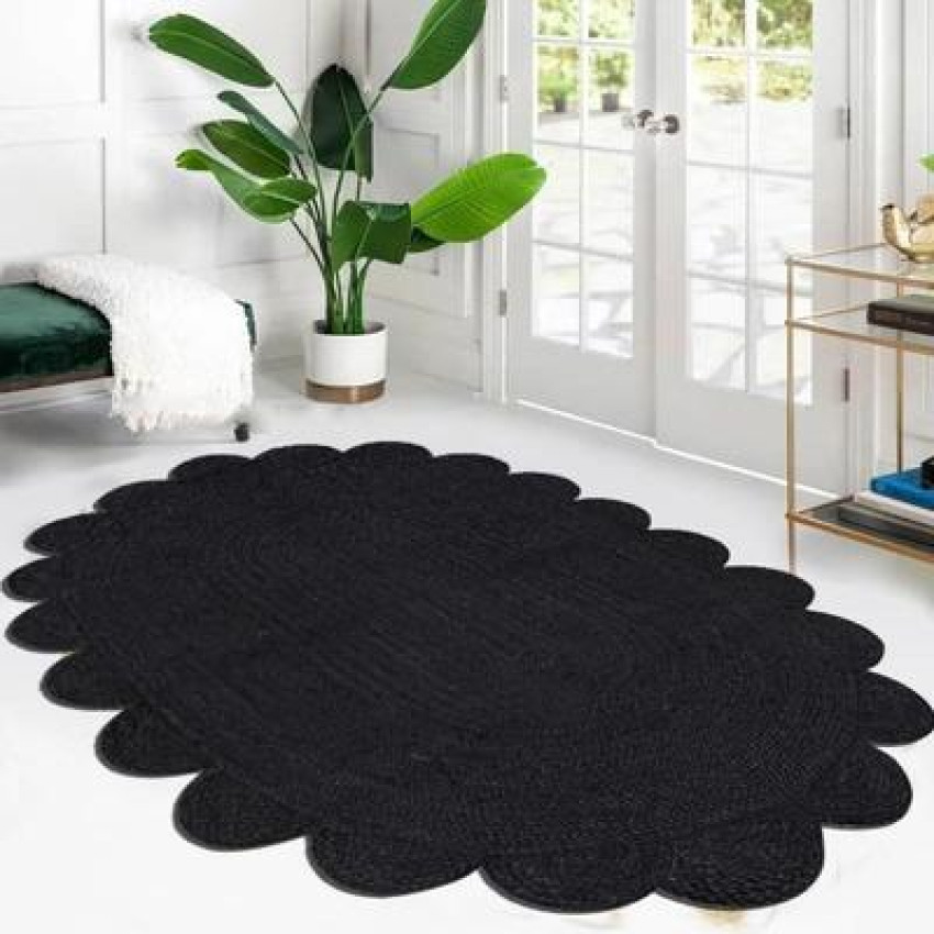 Handmade Hand Braided Natural Black Jute Scolloped Floor Area Rug