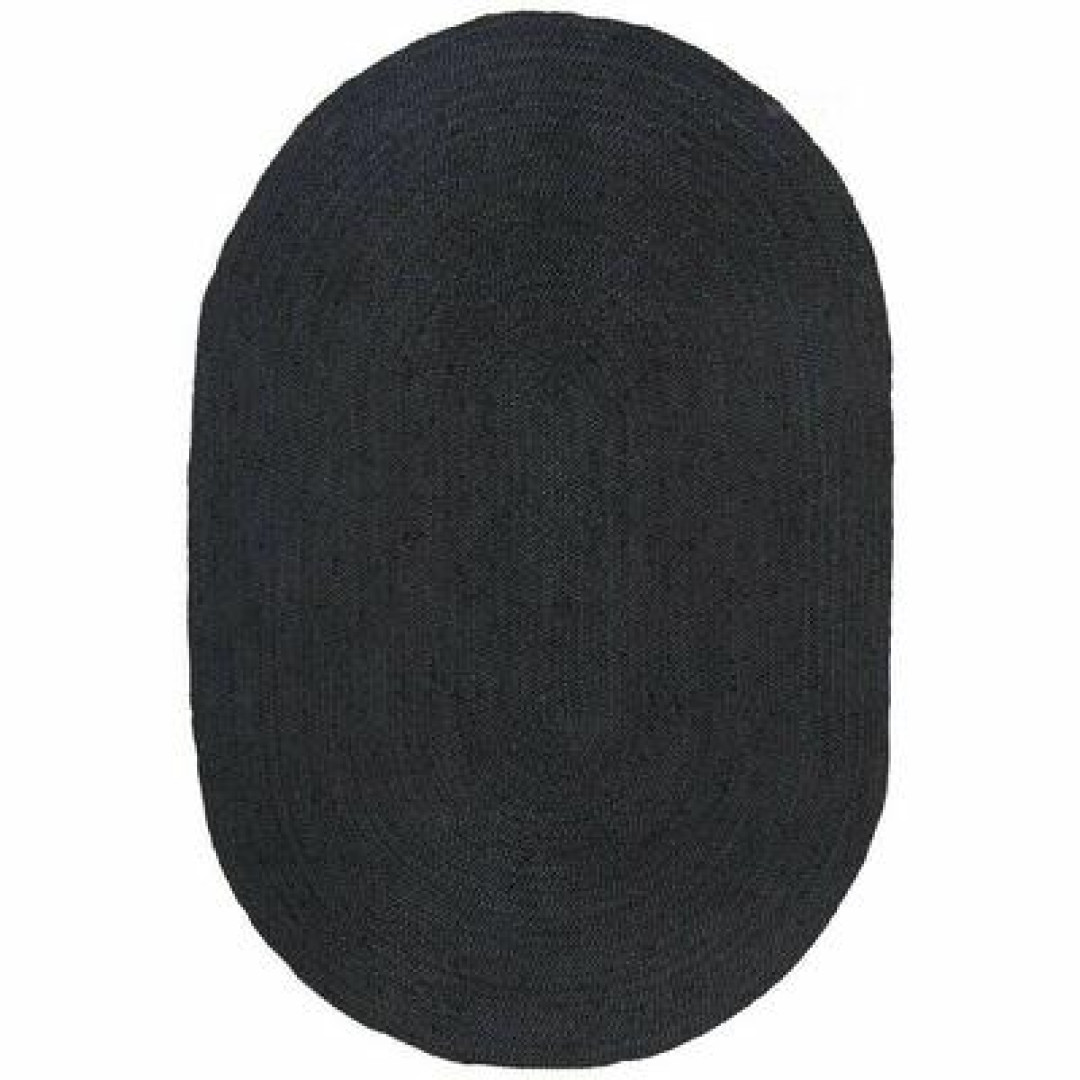 Handmade Black Natural Jute Oval Shape Floor Area Rug