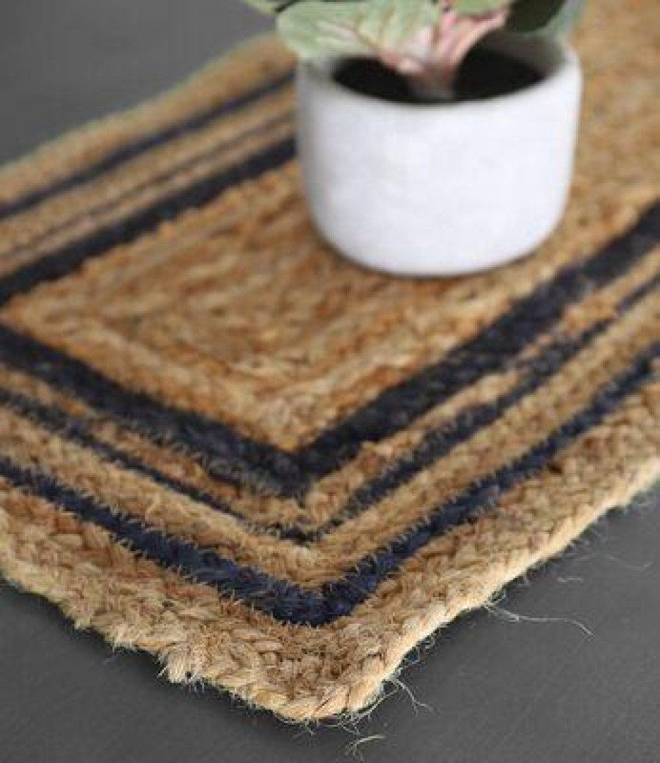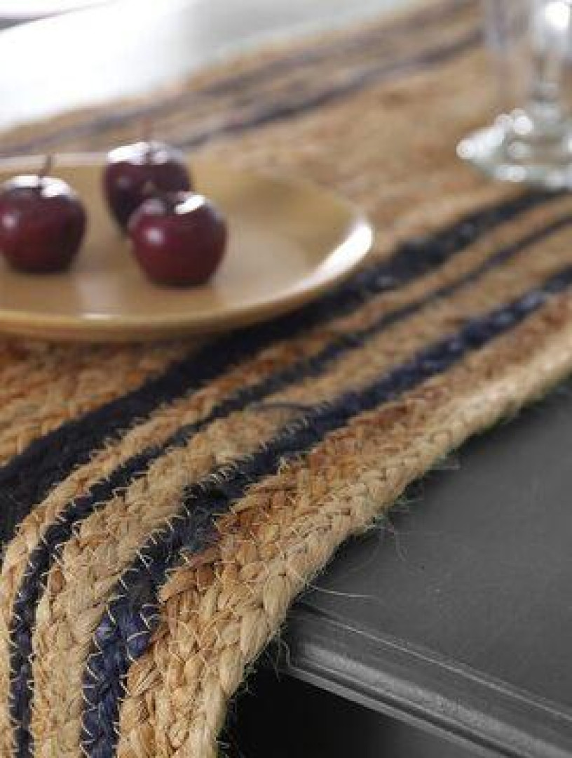 Handmade Braided Jute Neavy Blue Frame Table Runner For Dining Table