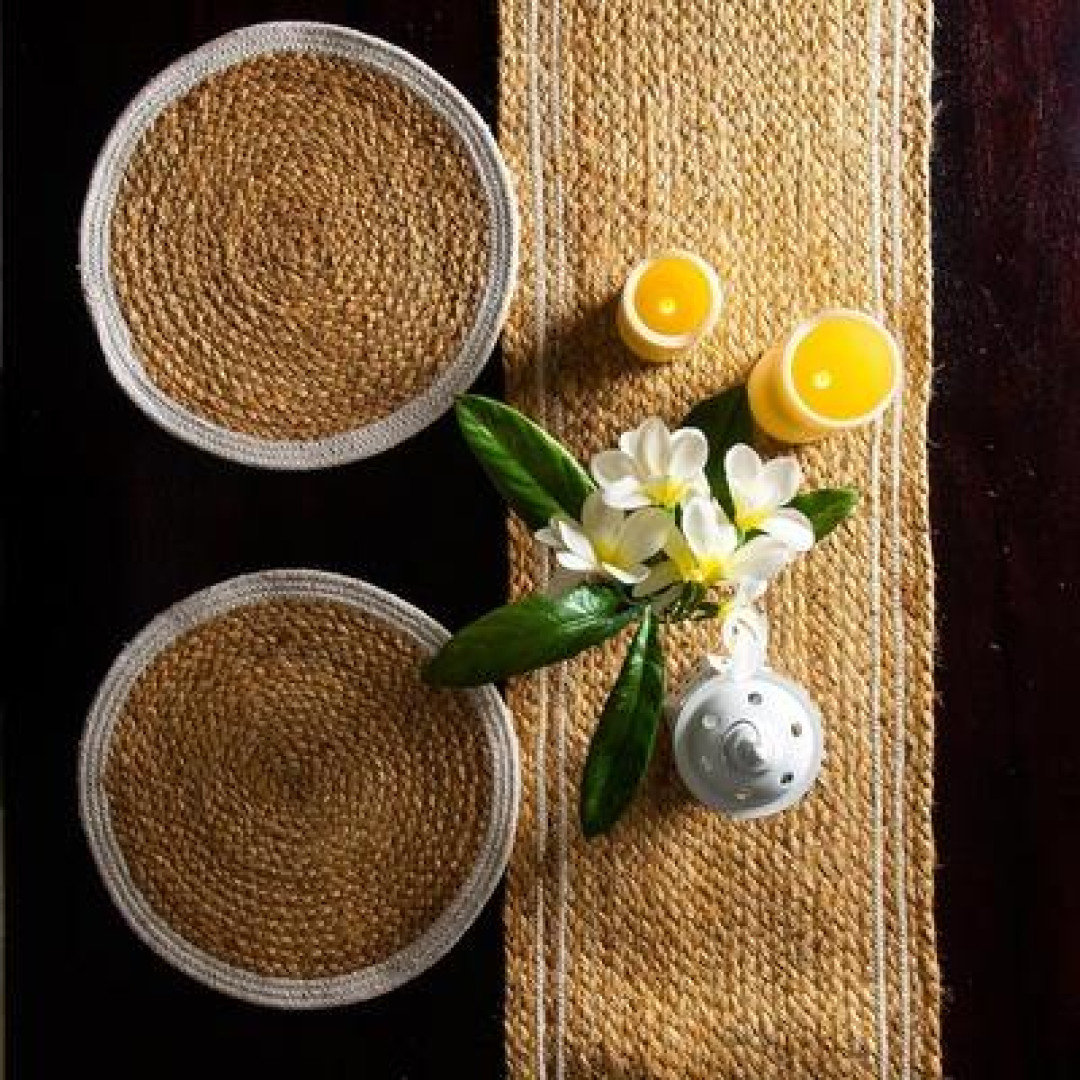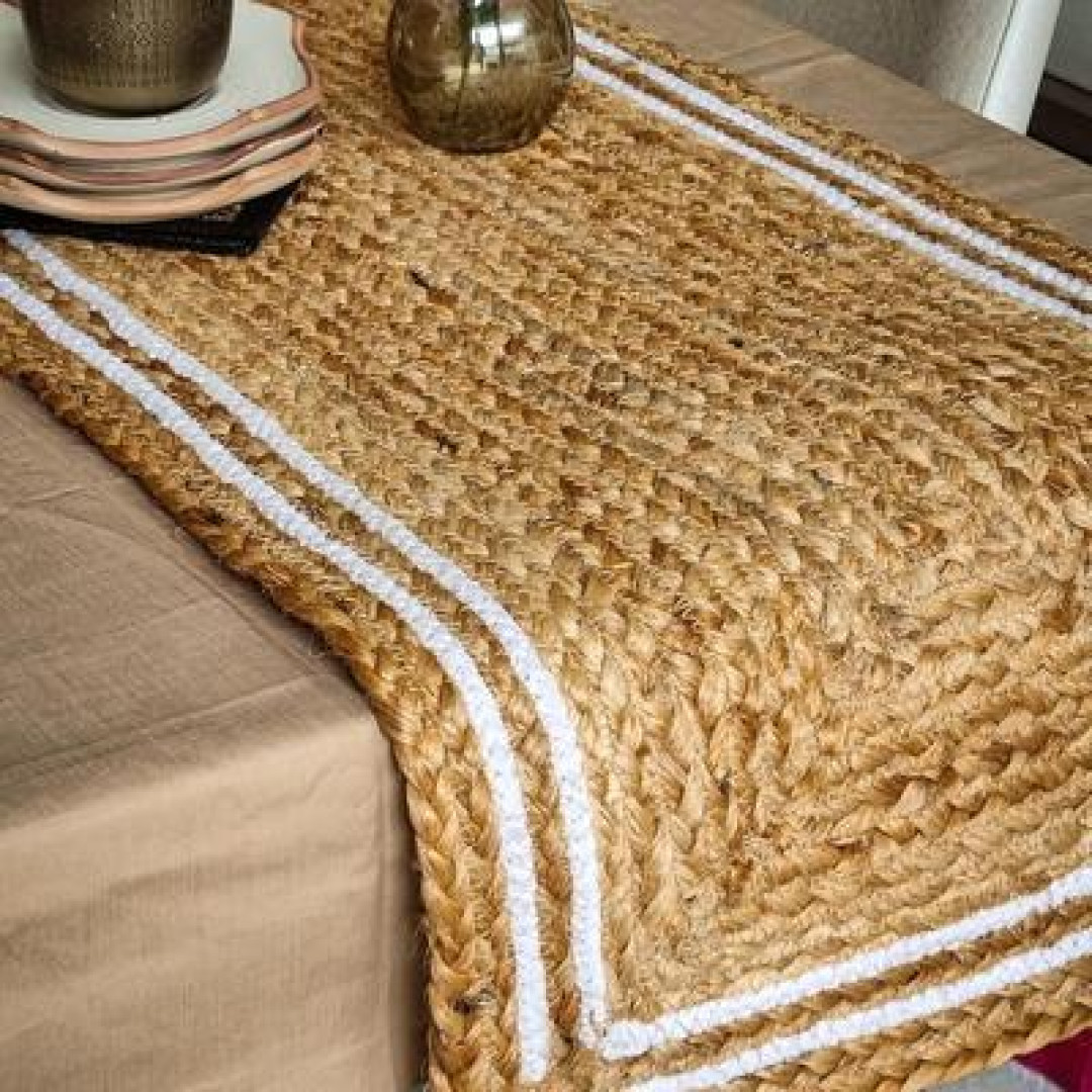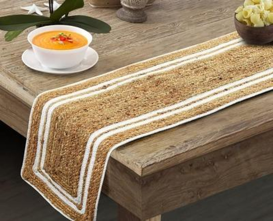 Handmade Braided Natural Jute with White Eco-Friendly Dining Table Runner