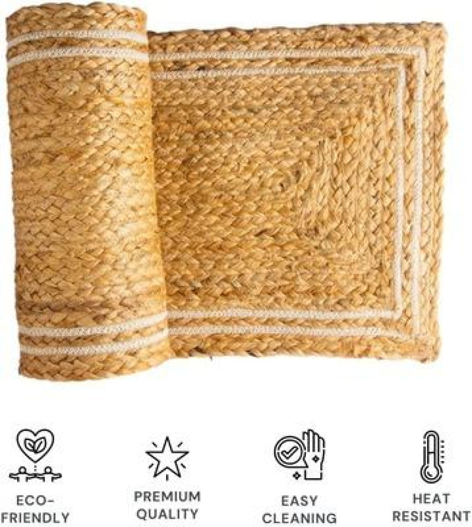 - ✅Handcrafted Excellence: This table runner rug is meticulously handwoven using premium quality natural jute fibres, ensuring durability and a rustic charm.Handmade Quality: Crafted with care, ensuring a unique and artisanal touch.Natural Material: Made from 100% eco-friendly jute, promoting sustainability