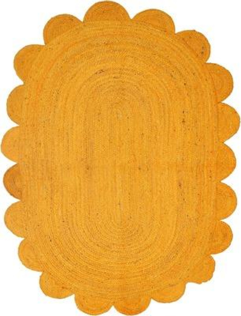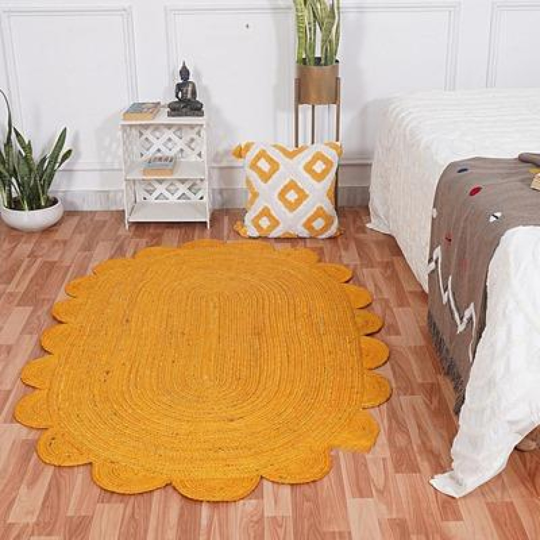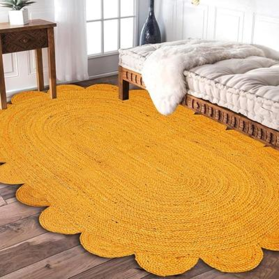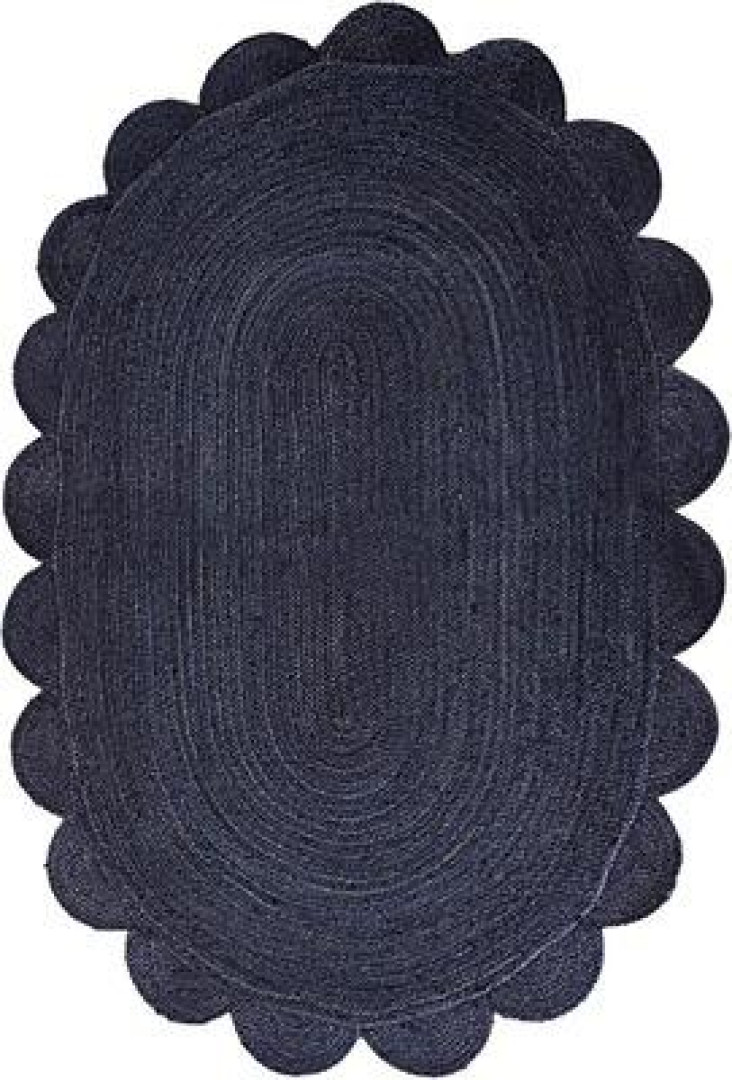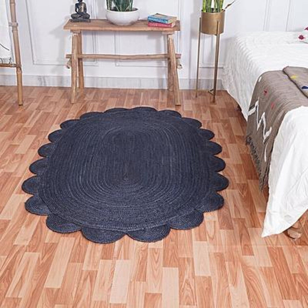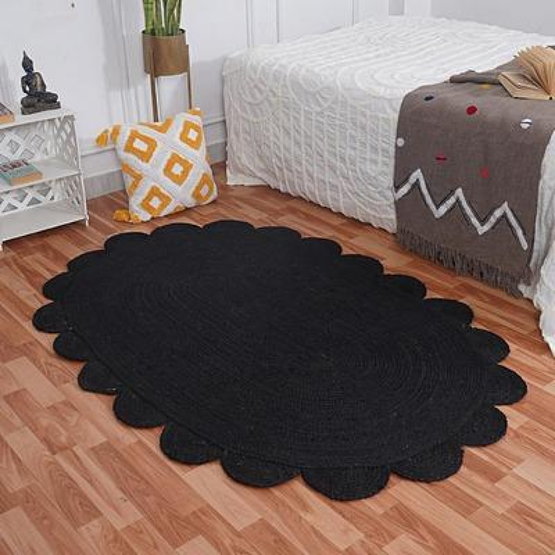 Handmade Braided Natural Jute Oval Shape Scolloped Floor Area Rug-Door Mat Rug