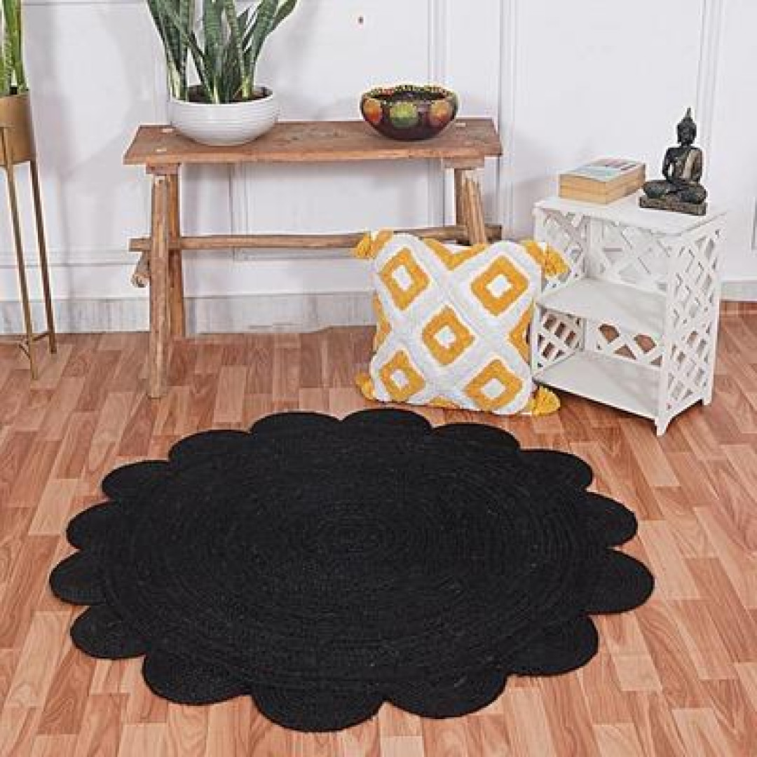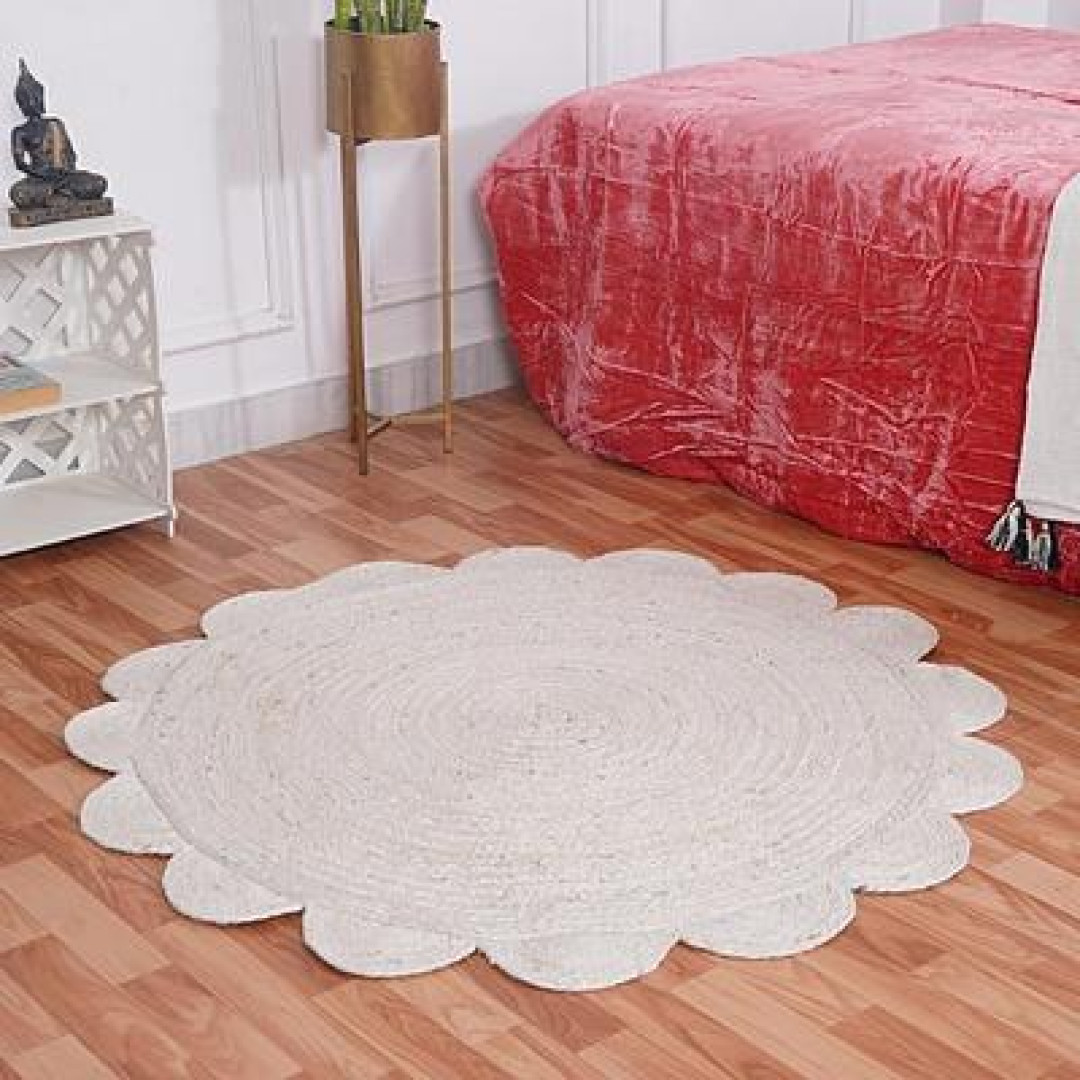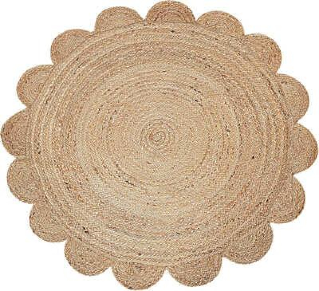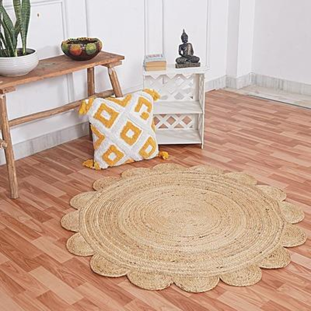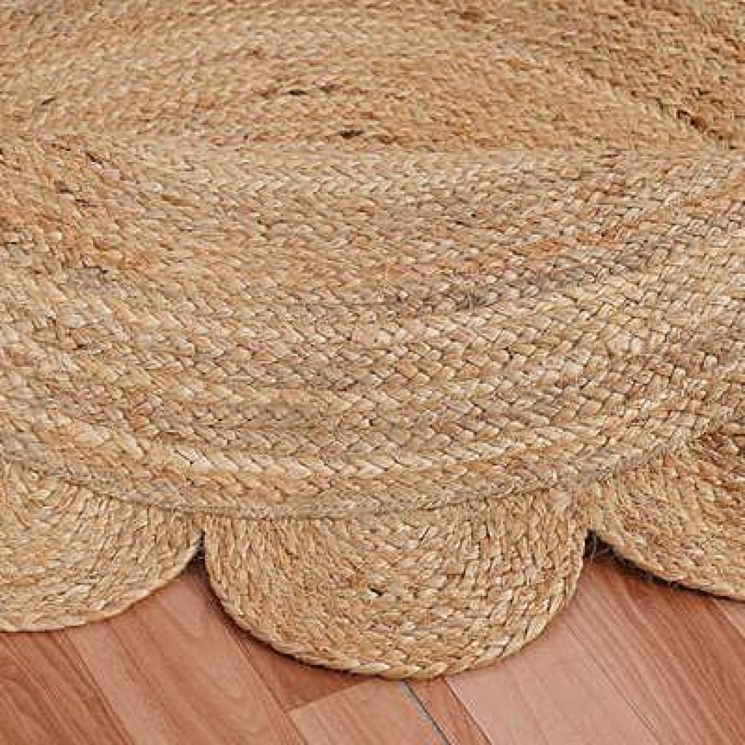 Handmade Braided Natural Jute Round Shape Scolloped Floor Area Rug-Door Mat Rug
