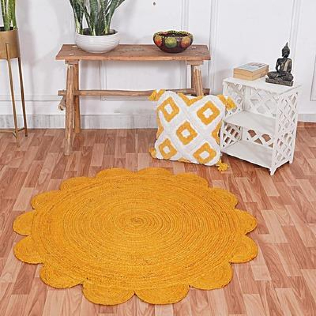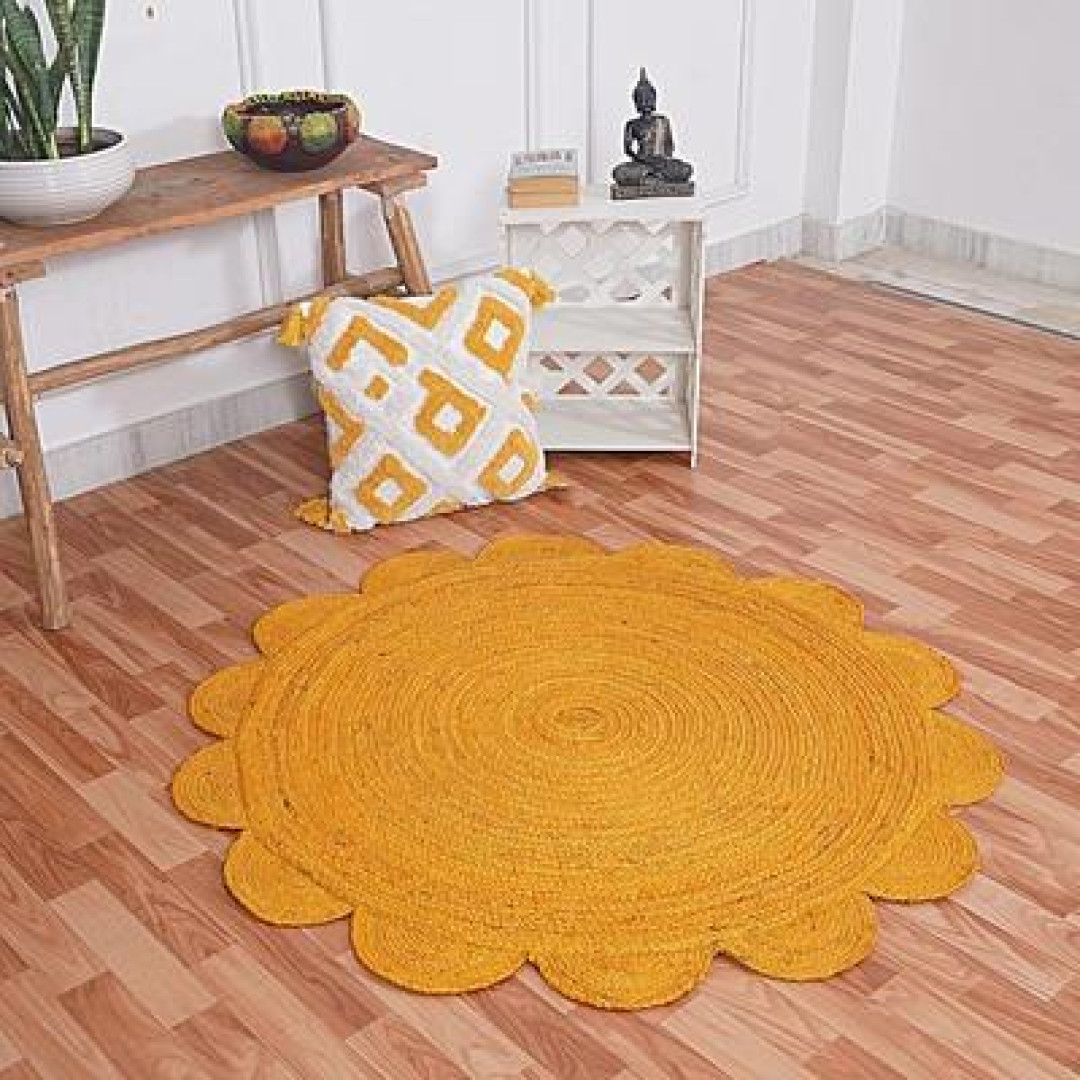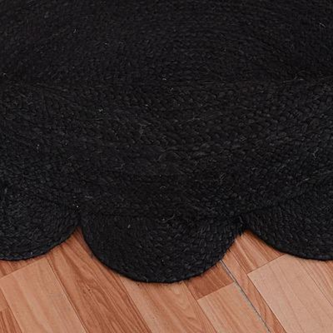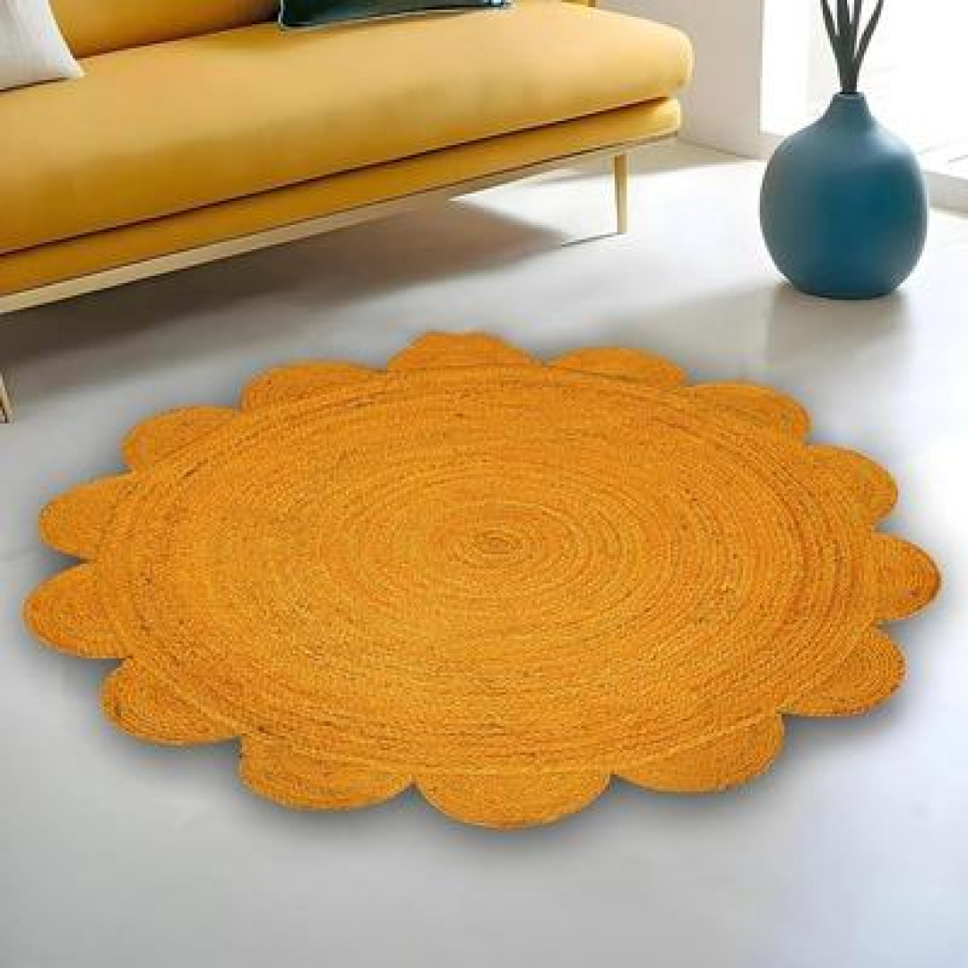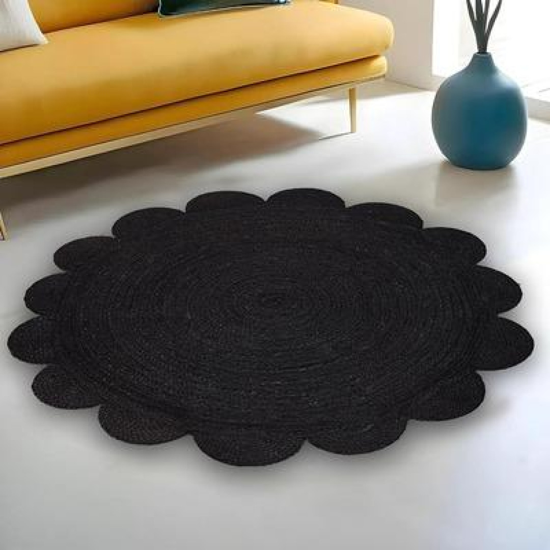 Handmade Braided Natural Jute Round Shape Scolloped Floor Area Rug-Door Mat Rug