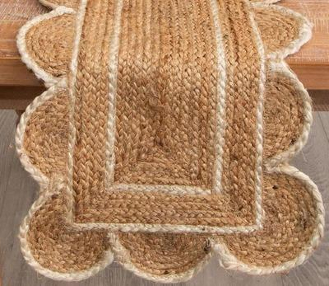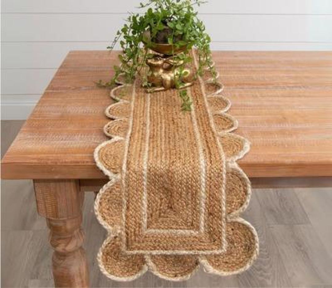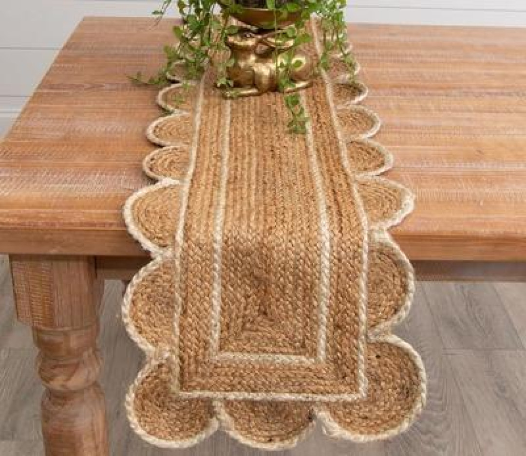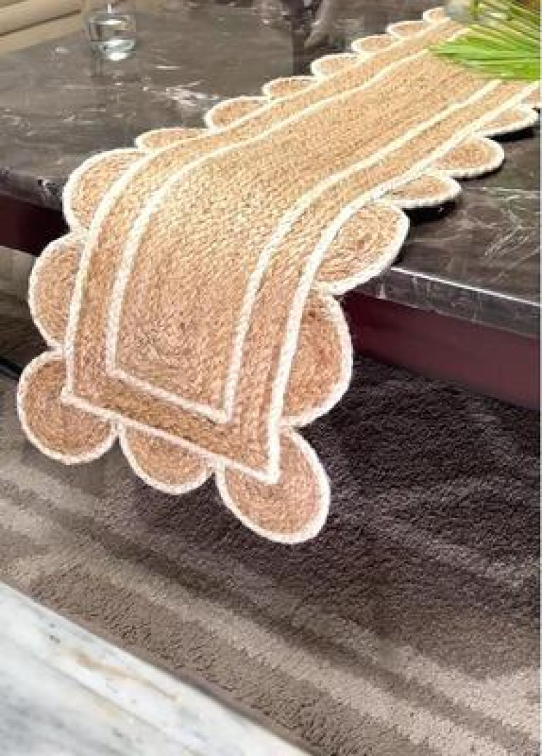 Handmade Hand Braided Natural with White Jute Scalloped Shape Eco-Friendly Table Runner