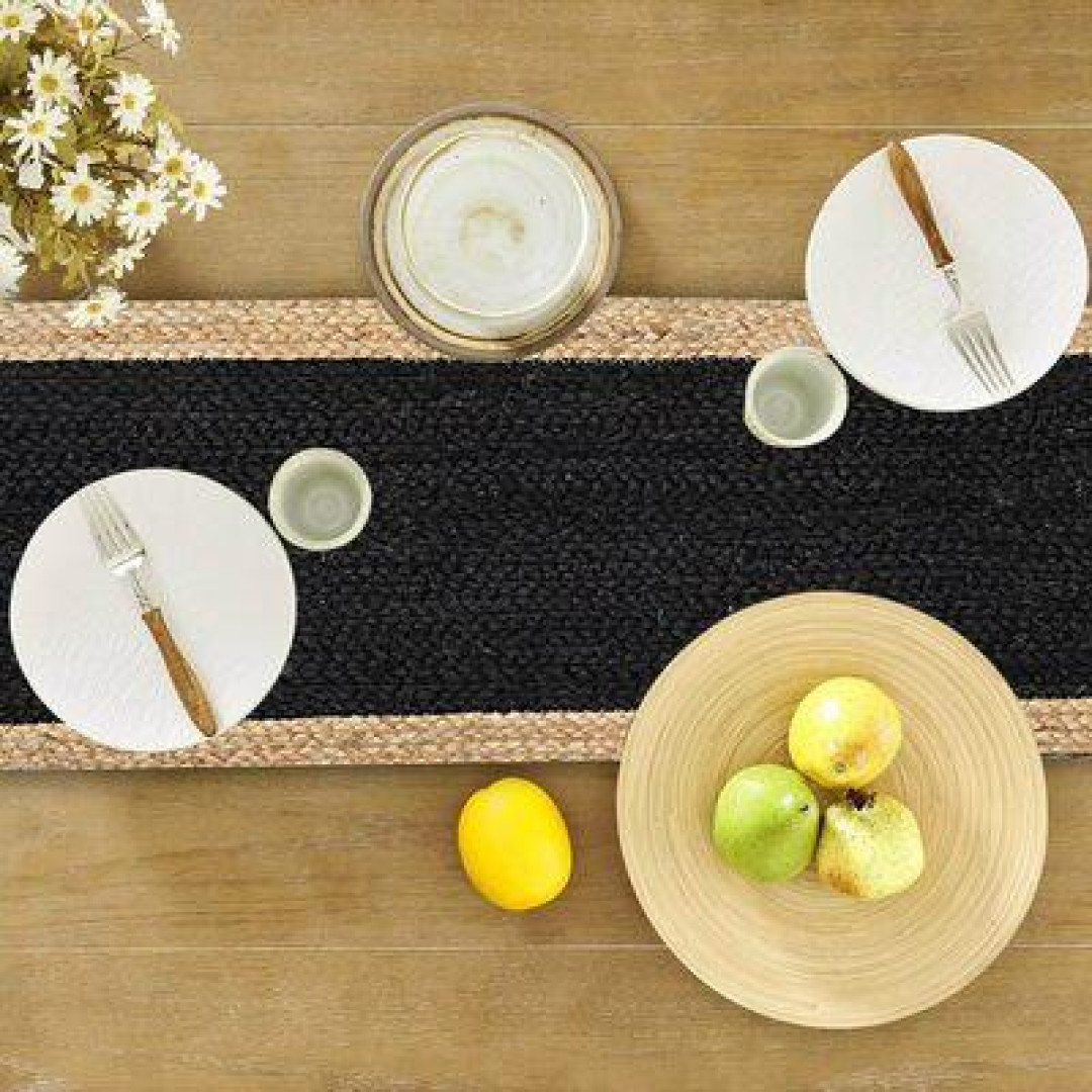 Handmade Natural Jute Black Dining Table Runner With beige Boundry