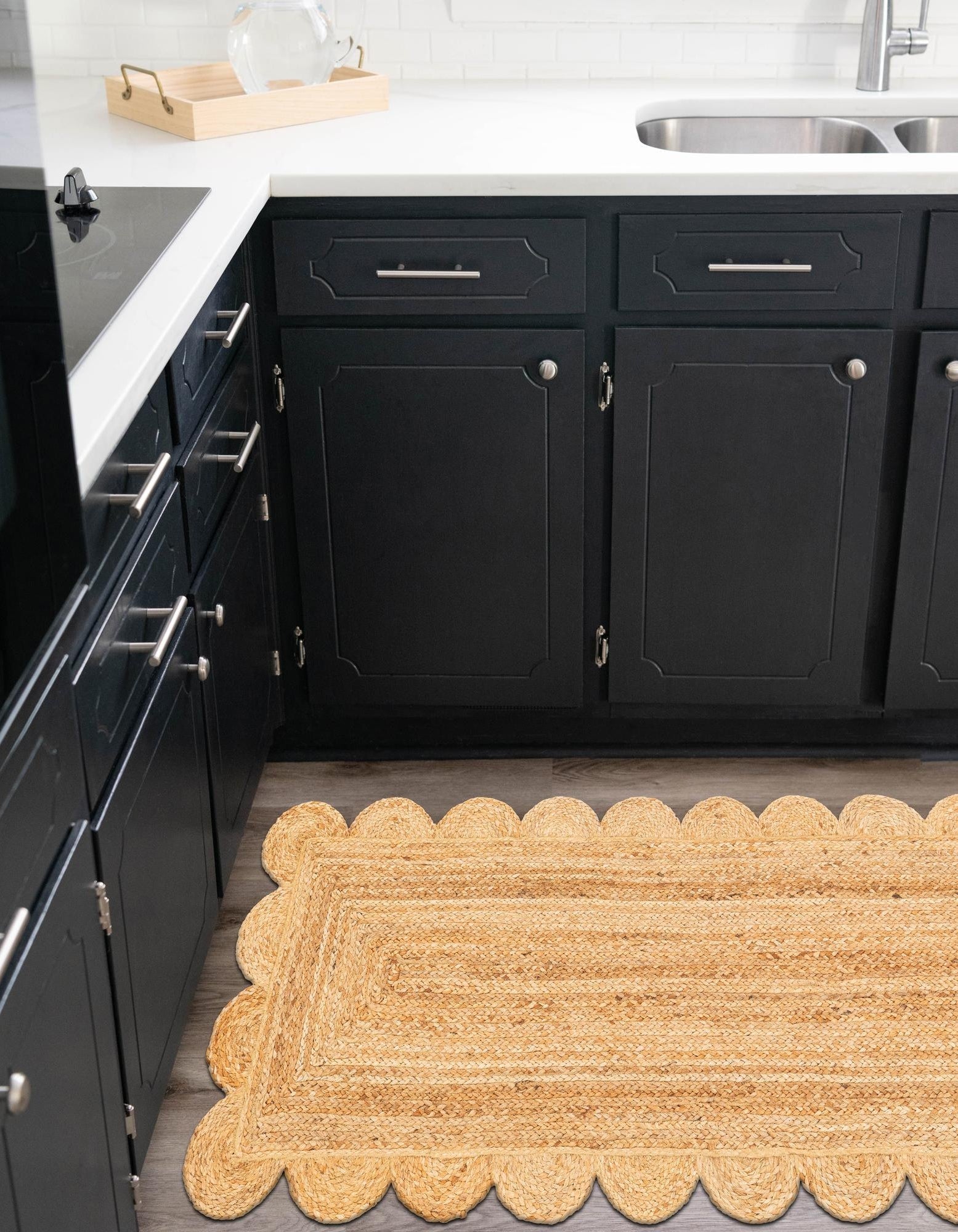 Bring timeless simplicity and natural charm into your home with this handmade scalloped rectangular jute rug. Carefully crafted by skilled artisans, this rug features a pure natural jute design with a soft scalloped edge, without any contrasting border, creating a clean and organic look.