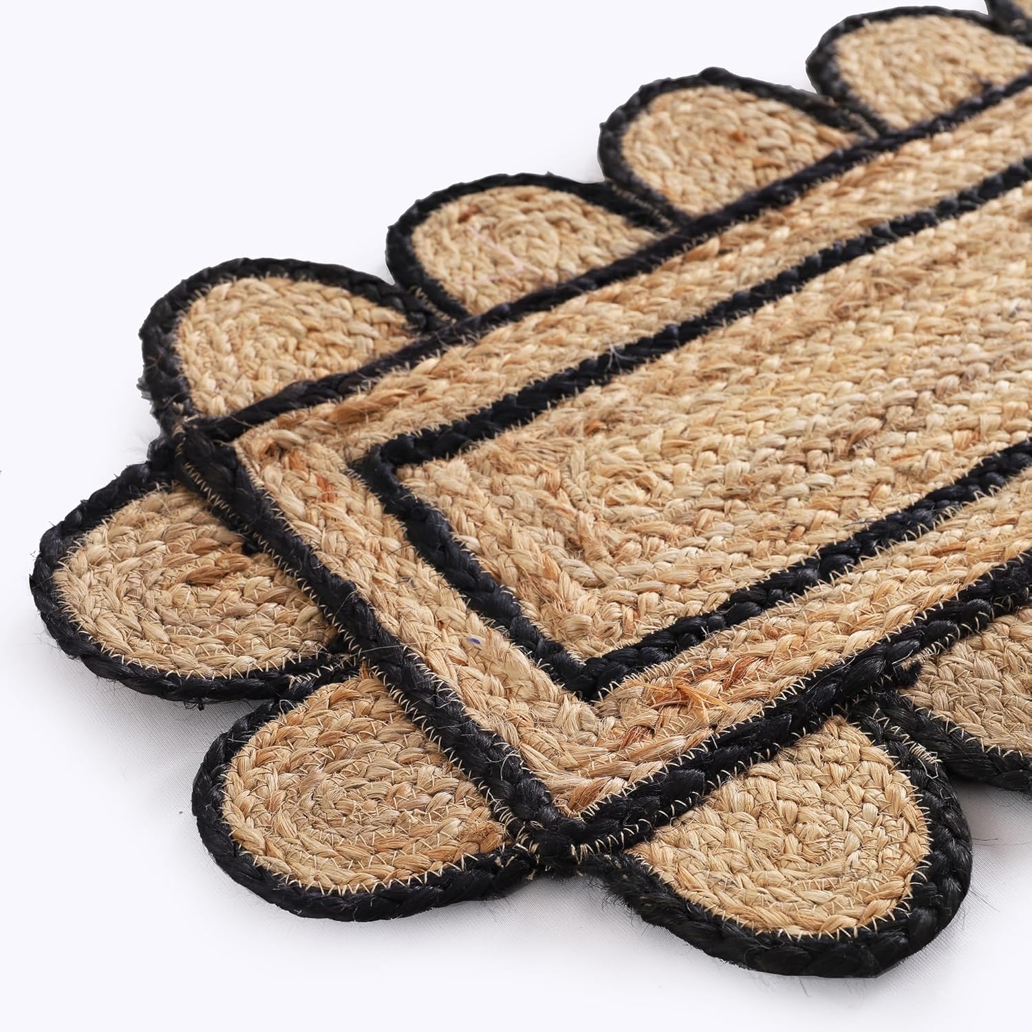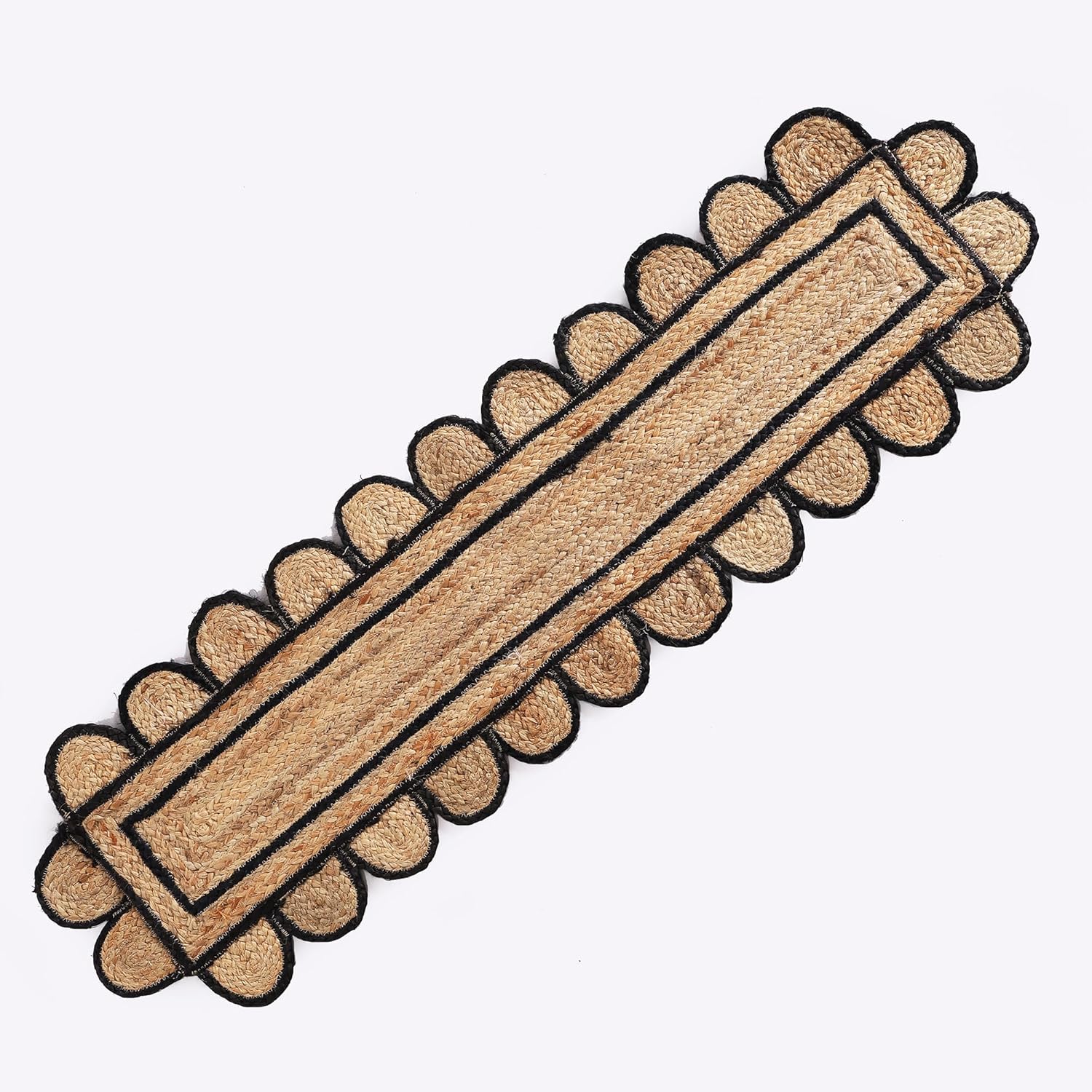Handmade Eco Friendly Natural Jute Scalloped Black Border Dining Table Runner