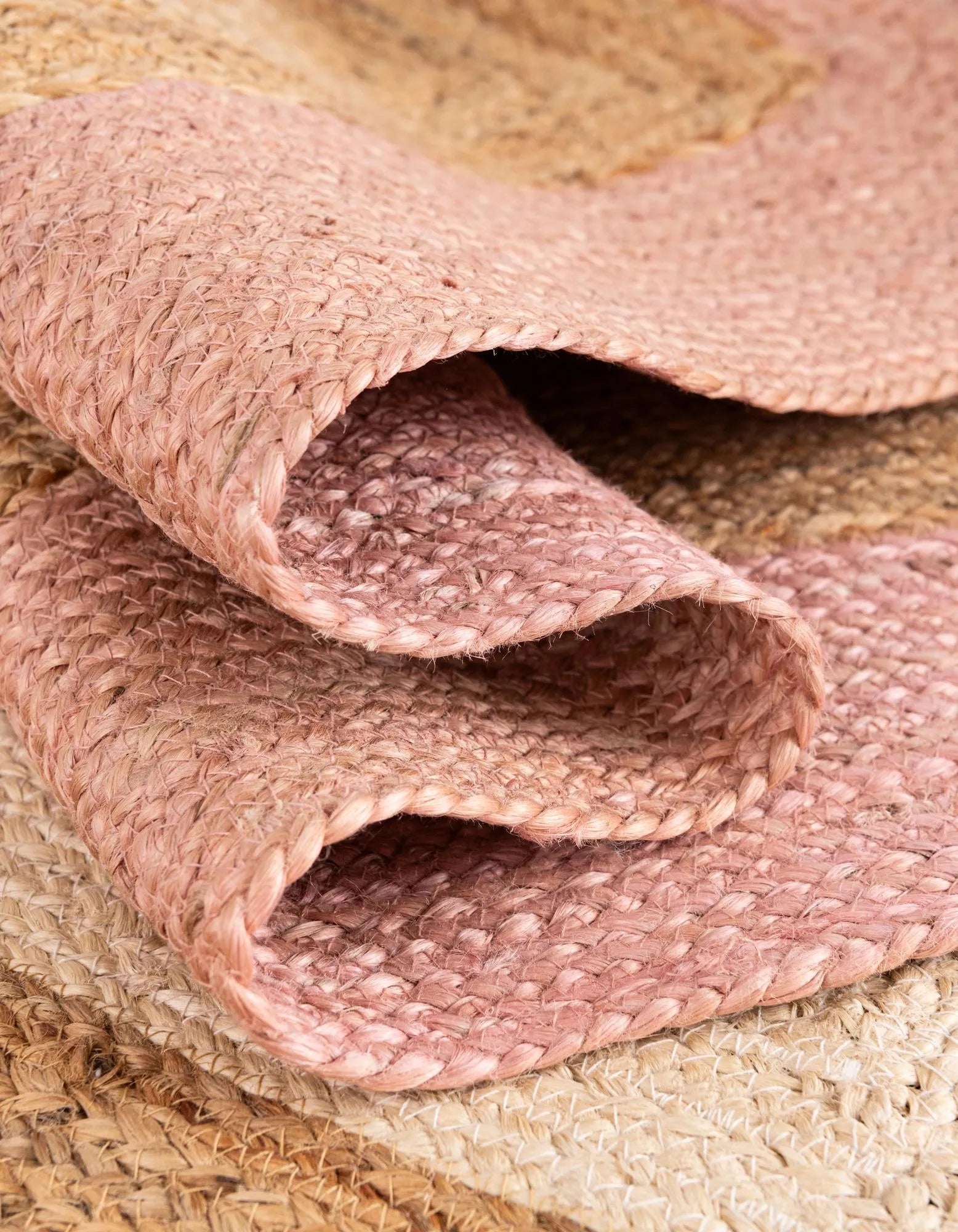 Handwoven from 100% natural jute fibers, this rug offers organic texture with a firm, durable feel underfoot. The gentle pink accent adds a modern boho charm, making it an ideal choice for bedrooms, nurseries, reading corners, or relaxed living spaces.