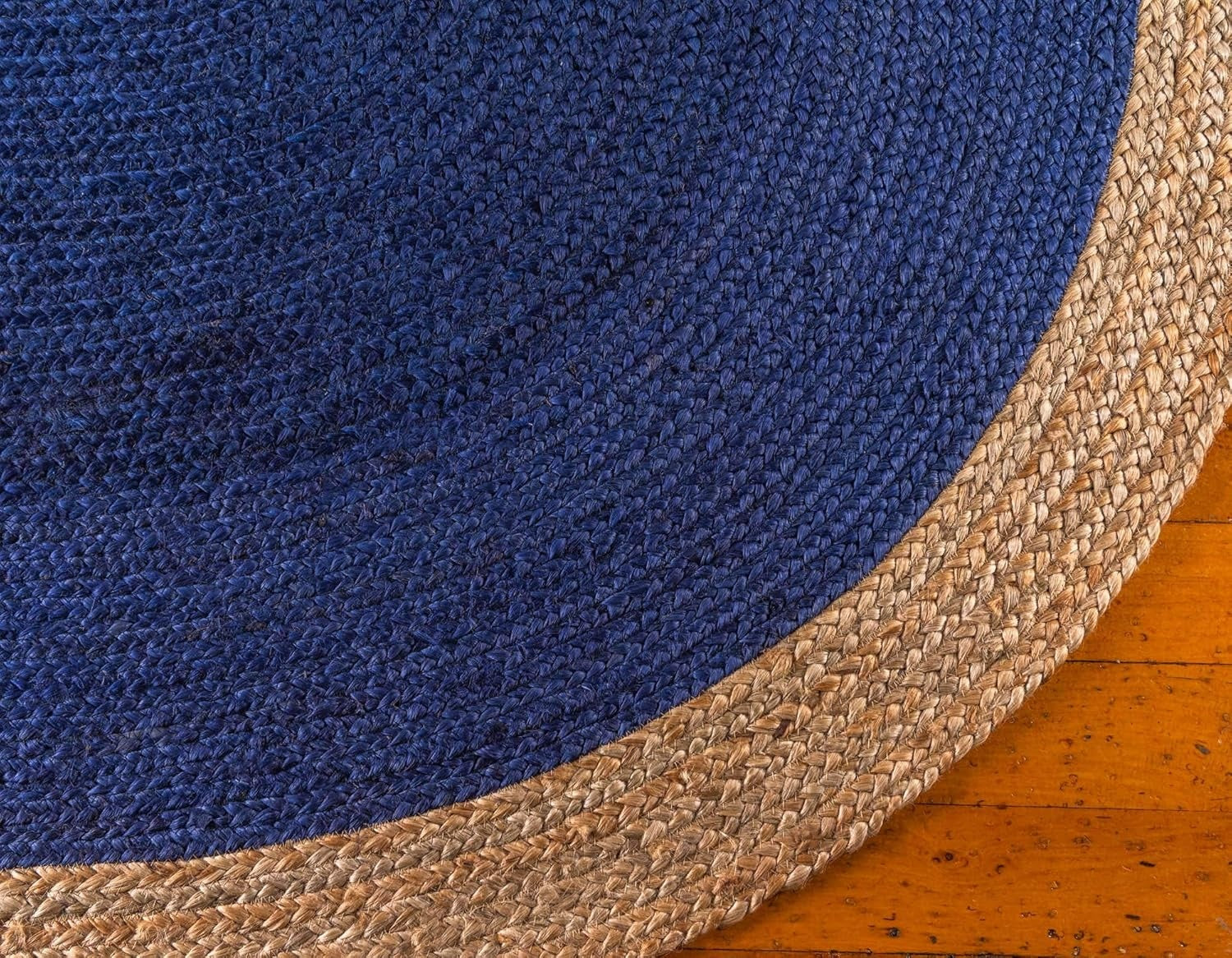 Make a bold, nautical statement! This Navy Blue Jute Oval Rug features a rich, deep blue center framed by a ruggedly beautiful natural tan border. It is the perfect piece for those who want to combine the raw, organic texture of jute with a clean, sophisticated color contrast.